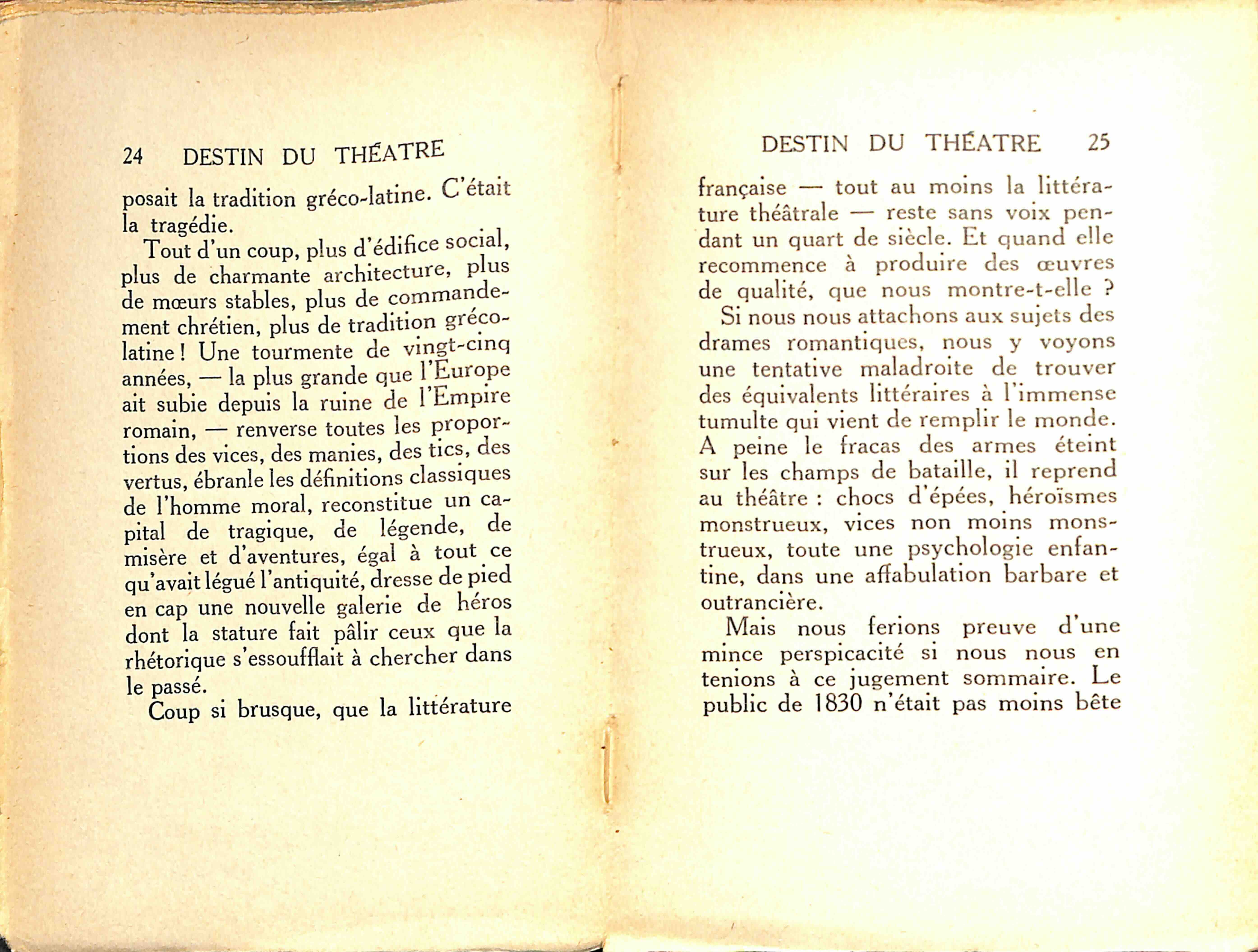 Le théâtre ne se borne pas à demander, comme le roman, un auteur et un imprimeur, il veut des acteurs et un public.