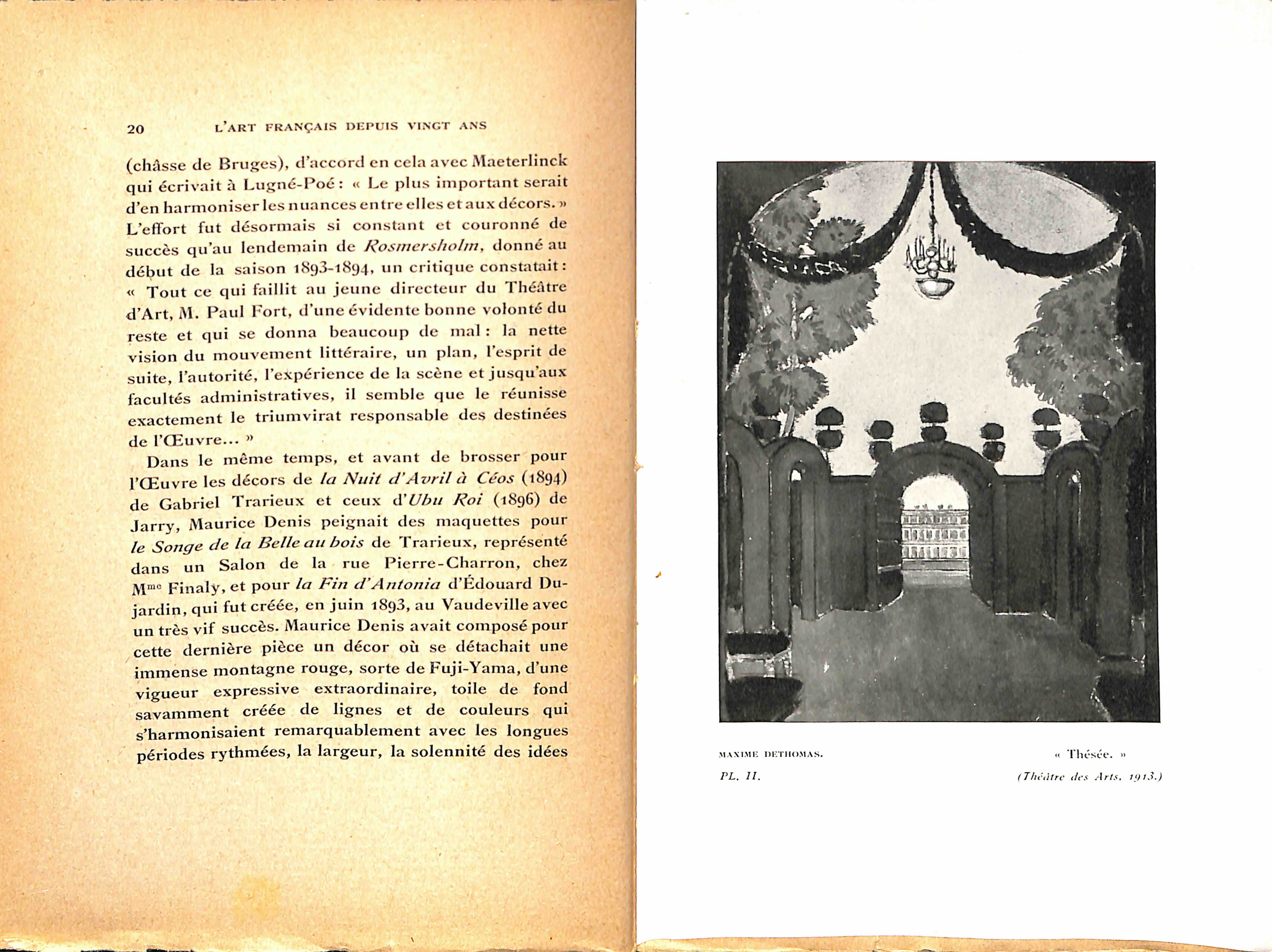 Aussi, au théâtre, les oeuvres dramatiques sont-elles moins remarquables, en général, durant ces années, que les recherches des peintres dans le domaine de la mise en scène est l’application pratique et théorie nouvelle, nées du symbolisme. D’ailleurs jamais cette application spéciale des travaux des peintres ne fut plus abondamment ni plus passionnément discutée. Mais il était assez difficile de démêler les faits et les théories, surtout de retrouver les ouvres, par suite de la dispersion des documents.