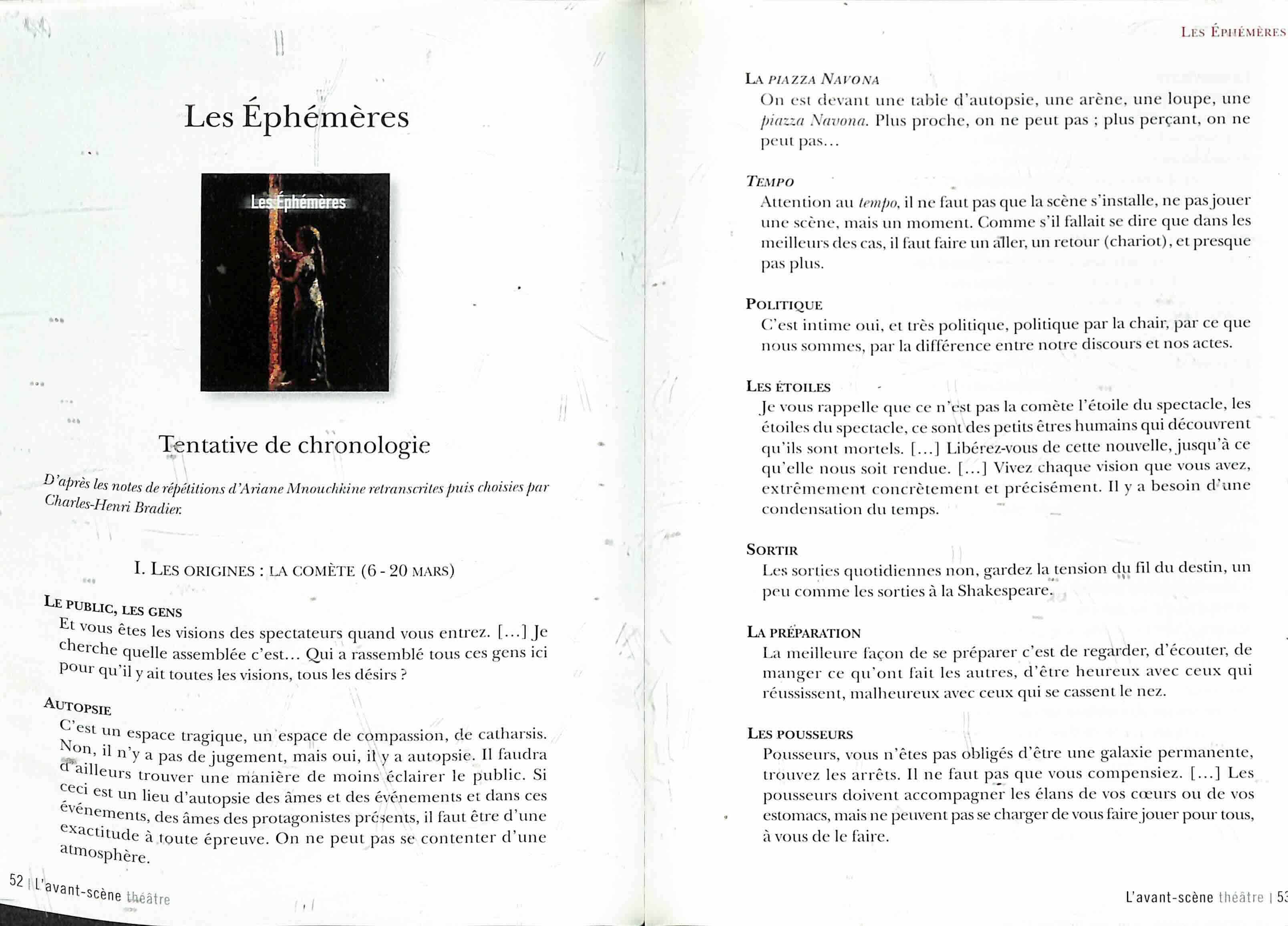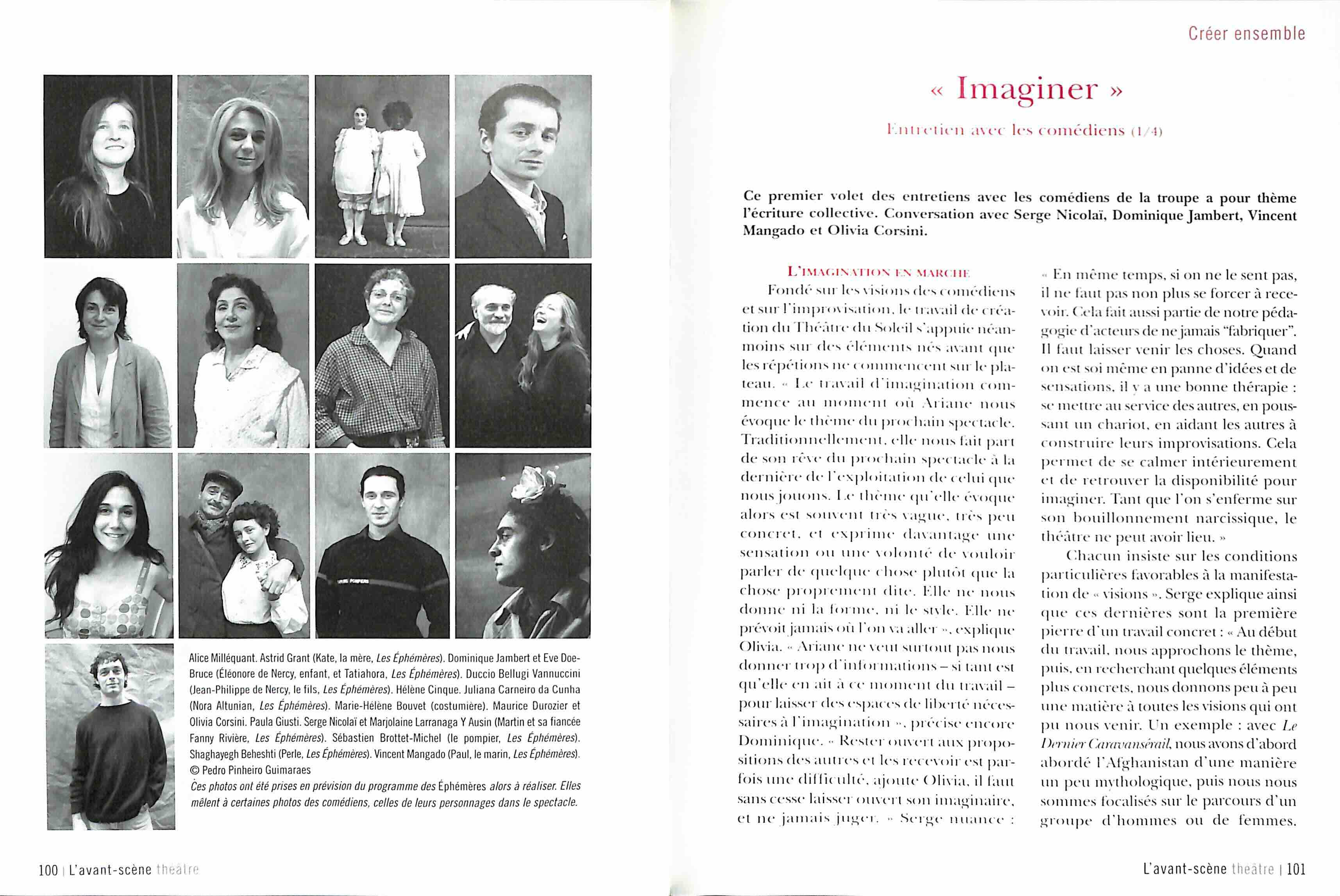 - Sommaire ÉditorialAu-delà du théâtre, par Olivier CelikLe Théâtre du Soleil- Ariane Mnouchkine, l’éclat du Soleil, par Armelle Héliot- Rencontre avec Ariane Mnouchkine, par Olivier Celik- L’aventure épique du Théâtre du Soleil, par Fabienne Pascaud- De métamorphose en métamorphose, par Armelle HéliotNotes de répétitions (extraits)- Le Dernier Caravansérail (Odyssées)- Les Ephémères- Les Naufragés du Fol Espoir (Aurores)Créer ensemble - La création collective au Théâtre du Soleil, par Béatrice Picon-Vallin- Entretiens avec les comédiens, par Olivier Celik- Lettres aux comédiens, par Hélène Cixous- Le secret du Dernier des Dieux, par Hélène Cixous- Entretien avec Jean-Jacques Lemêtre, par Olivier Celik- « Notre théâtre », par Béatrice Picon-Vallin- L’ouverture au monde, l’aventure du Théâtre Aftaab- Lire, écouter, voir