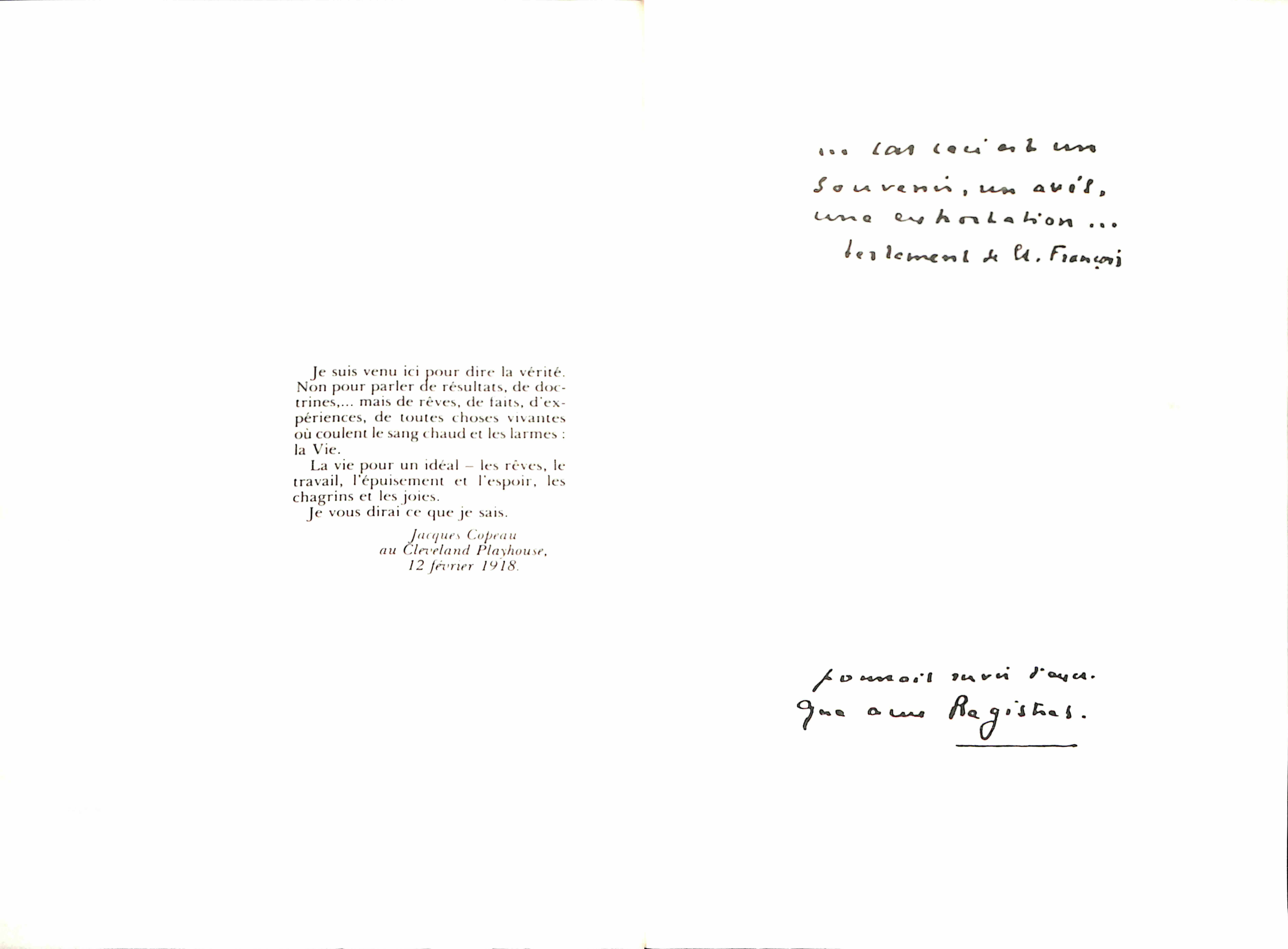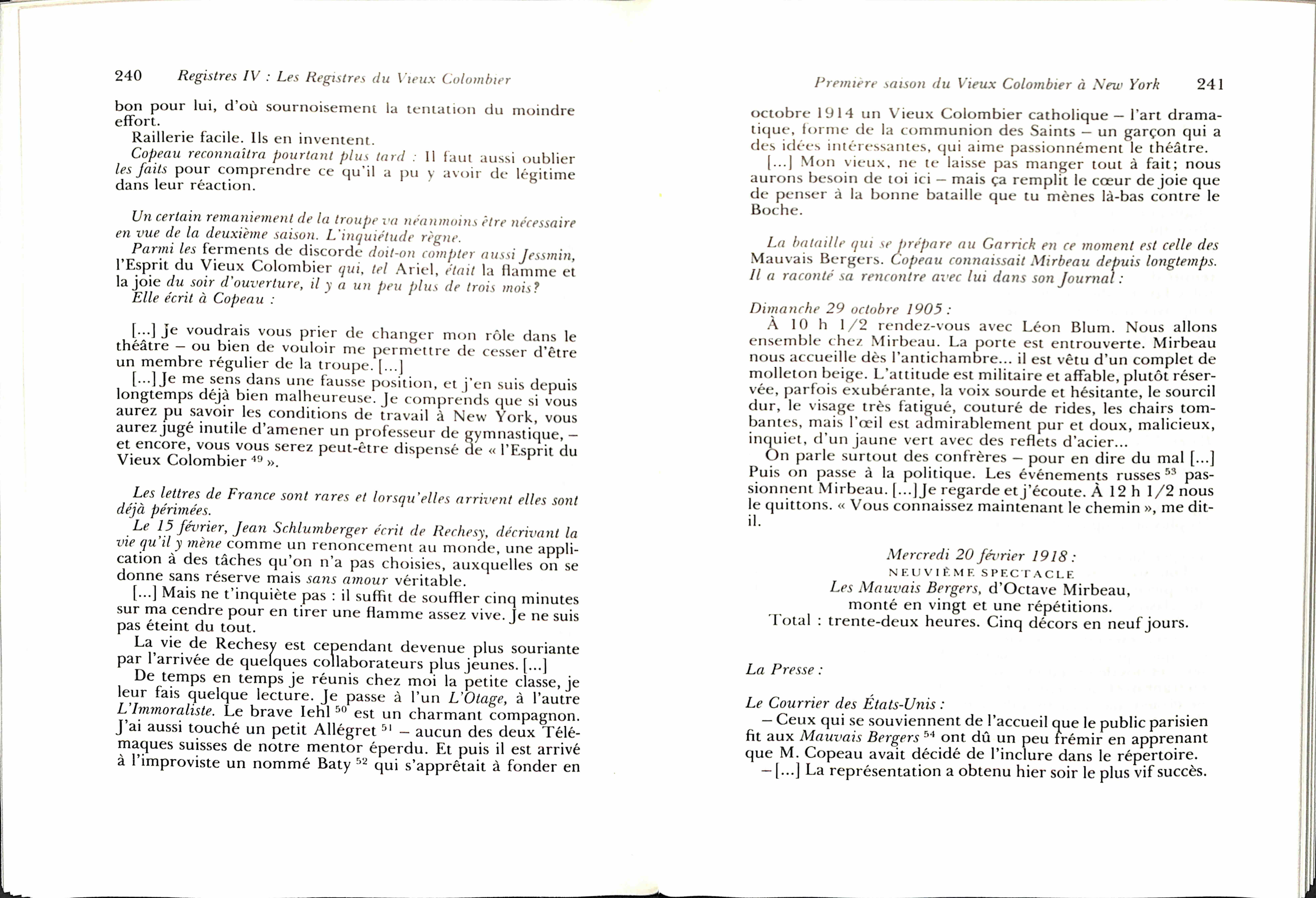 - - L’effort de J. Copeau au Théâtre du Vieux-Colombier.